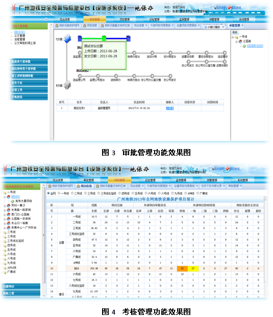 該系統(tǒng)包括網(wǎng)上辦事窗口、綜合信息、審批管理、項(xiàng)目管理、巡檢管理、監(jiān)測(cè)管理、預(yù)警管理等功能,實(shí)現(xiàn)對(duì)廣州地鐵設(shè)施的有序管理與保護(hù),對(duì)鄰近地鐵控制保護(hù)區(qū)的非地鐵建設(shè)項(xiàng)目的集中管控,實(shí)現(xiàn)地鐵設(shè)施保護(hù)工作的標(biāo)準(zhǔn)化與信息化管理。