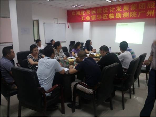 2016年8月18日,北京城建設計發(fā)展集團股份有限公司工會領導慰問勘測院廣州分公司及安捷公司項目部,并于勘測院廣州分公司會議室召開座談會。