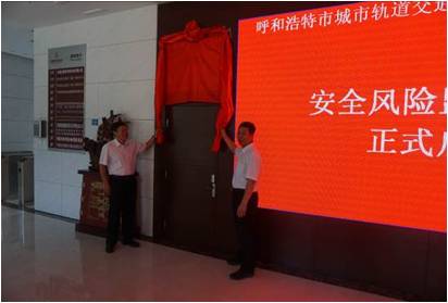 2016年8月16日,呼和浩特軌道公司總經(jīng)理劉占英、安全總監(jiān)張延?xùn)|兩位領(lǐng)導(dǎo)為監(jiān)控中心揭牌。劉占英總經(jīng)理對(duì)安全風(fēng)險(xiǎn)工作一直高度重視,本次又親自為風(fēng)險(xiǎn)監(jiān)控中心揭牌,揭牌儀式后又對(duì)監(jiān)控中心進(jìn)行了視察,唐明明博士對(duì)最近安全風(fēng)險(xiǎn)管理工作進(jìn)行了匯報(bào),劉總經(jīng)理在聽取了工作匯報(bào)后對(duì)下一步工作進(jìn)行了指導(dǎo)。